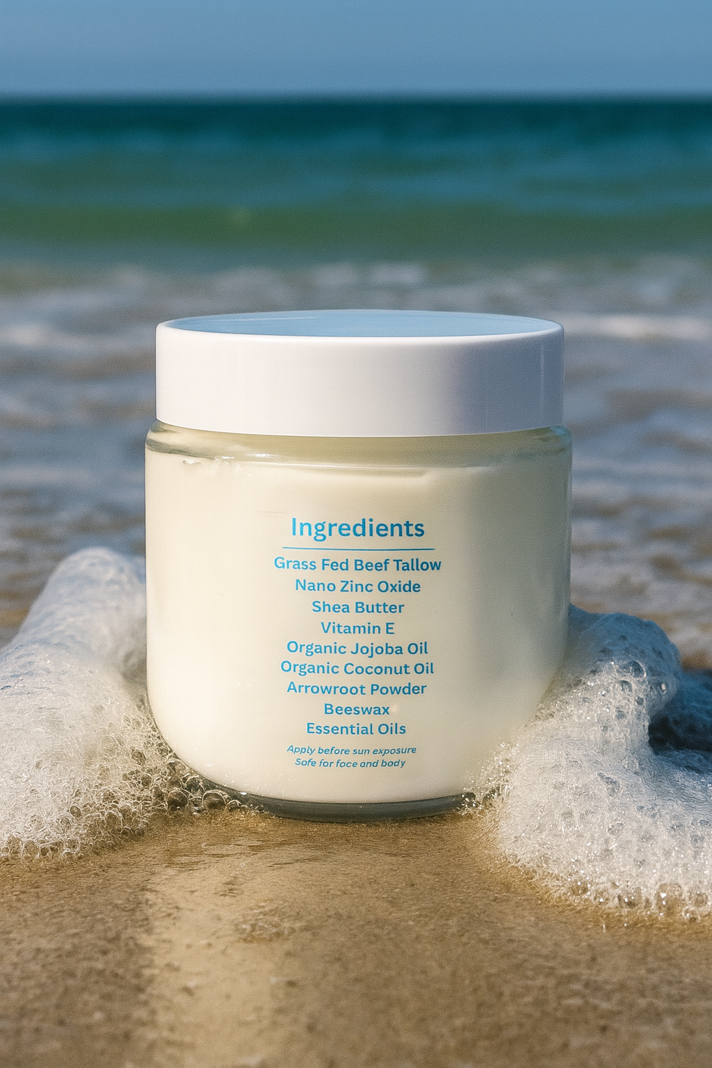Unable to find a solution I could truly trust, I began crafting my own formula using whole, nourishing ingredients—beef tallow, shea butter, coconut oil, jojoba oil, beeswax, and non-nano zinc oxide. What began as a small kitchen experiment quickly grew into Bearly California Sun Balm, a sun care product that’s gentle enough for babies, safe for pregnancy, and kind to the planet.